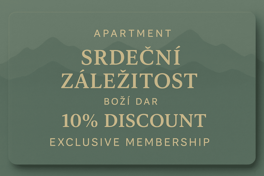 Pokud jste již u nás v Srdeční záležitosti byli ubytováni, neváhejte nás při další rezervaci kontaktovat pro všechny hosty kteří nás už navštívili poskytujeme 10% slevu na váš každý další pobyt – jako poděkování Vám při rezervaci do 6 měsíců od vašeho odjezdu poskytneme extra slevu 15% k vaší stávající tedy celkem 25% slevu.